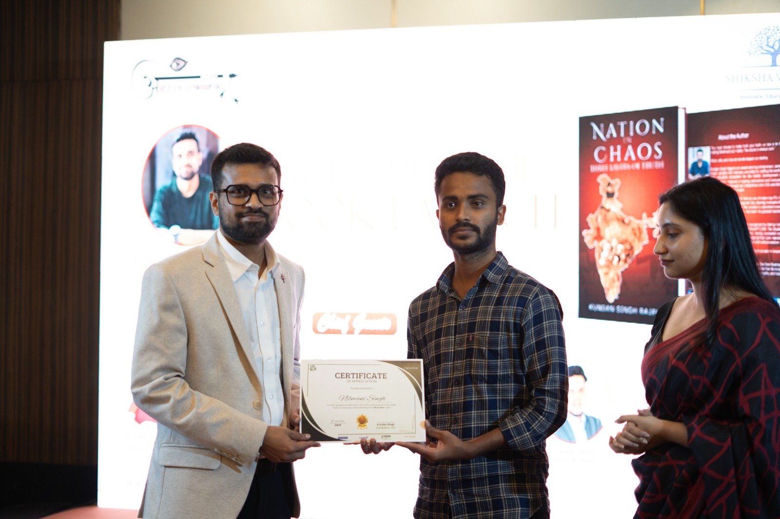The campaign was highlighted during the launch of founder Kundan Singh Rajput’s latest book, Nation in Chaos – Three Layers of Truth, held at Courtyard, Bilaspur. The occasion was made even more meaningful as several students were recognised for their active role in the tree plantation movement.